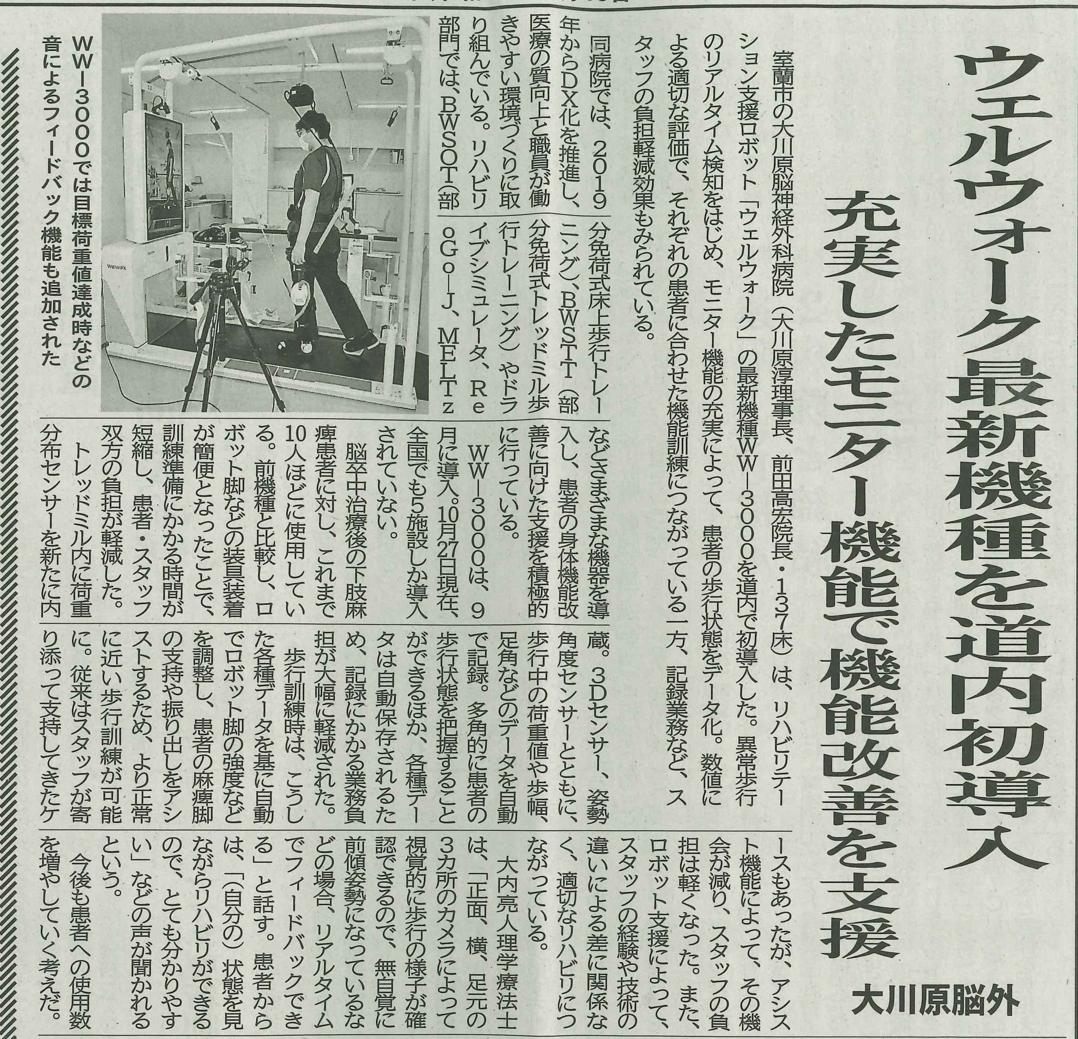 北海道医療新聞 ウェルウォーク最新機種を道内初導入 充実したモニター機能で機能改善を支援 2025.11.10