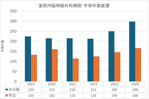 | 2026年3月現在 | 大川原脳神経外科病院 | 市立室蘭総合病院 (脳神経外科) |